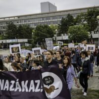 9.9. v Bratislave – Je načase skoncovať s kožušinovými chovmi, ozývalo sa ulicami hlavného mesta za silného skandovania ochranárov, aktivistiek a širokej verejnosti. Napriek nepriaznivému počasiu sa na Námestí SNP v Bratislave v sobotu zišlo niekoľko stoviek ľudí. Žiadali legislatívny zákaz chovu zvierat na kožušiny. Už tento mesiac na septembrovej schôdzi NR SR bude totiž parlament rozhodovať o návrhu, ktorý by postavil kožušinový chov mimo zákon. Kampaň občianskeho združenia Humánny pokrok Ide o chlp podporilo v online petícii vyše 76 tisíc ľudí. Podľa ochranárov je to jasná verejná objednávka a poslanci a poslankyne by mali hlas ľudu vypočuť.